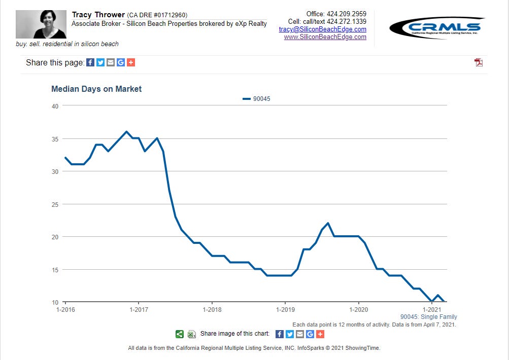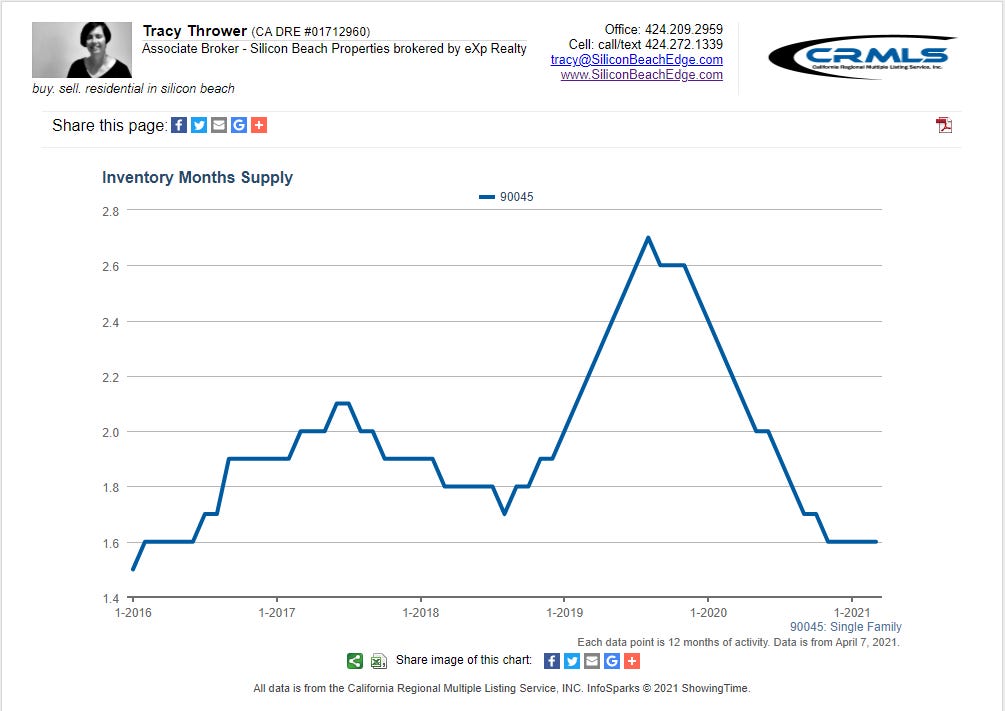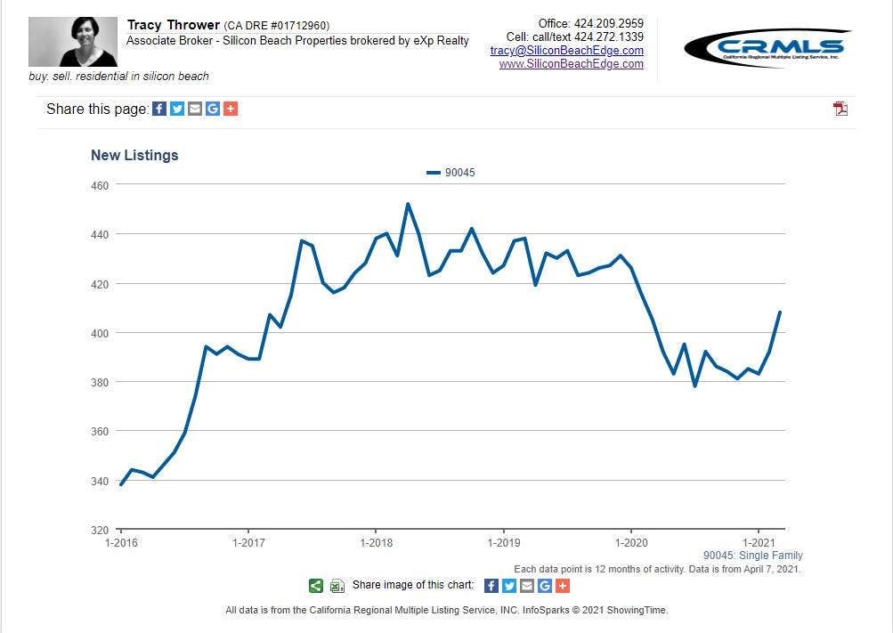 Also, there is a good amount of housing stock in Westchester held by older owners who might be more motivated to move now with the recent passage of Prop 19, which allows them to take their low tax basis to another CA property. The provisions just kicked in April 1st for the 55+ crowd.