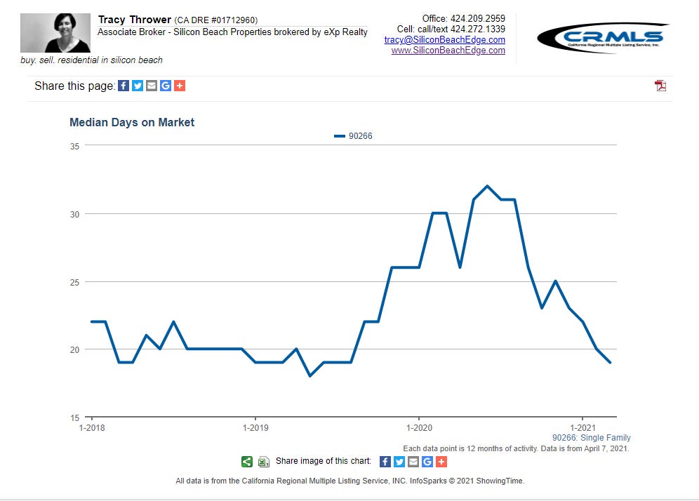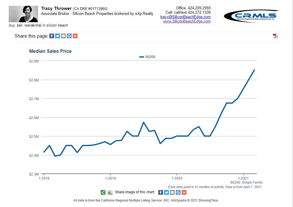 Pro-tip #3 for Manhattan Beach home buyers: With the median price sprinting up $50K/month, you will want to make a list of your non-negotiable needs in a property and be ready to pounce on the first property that matches enough or your criteria. Waiting is getting more expensive by the month.