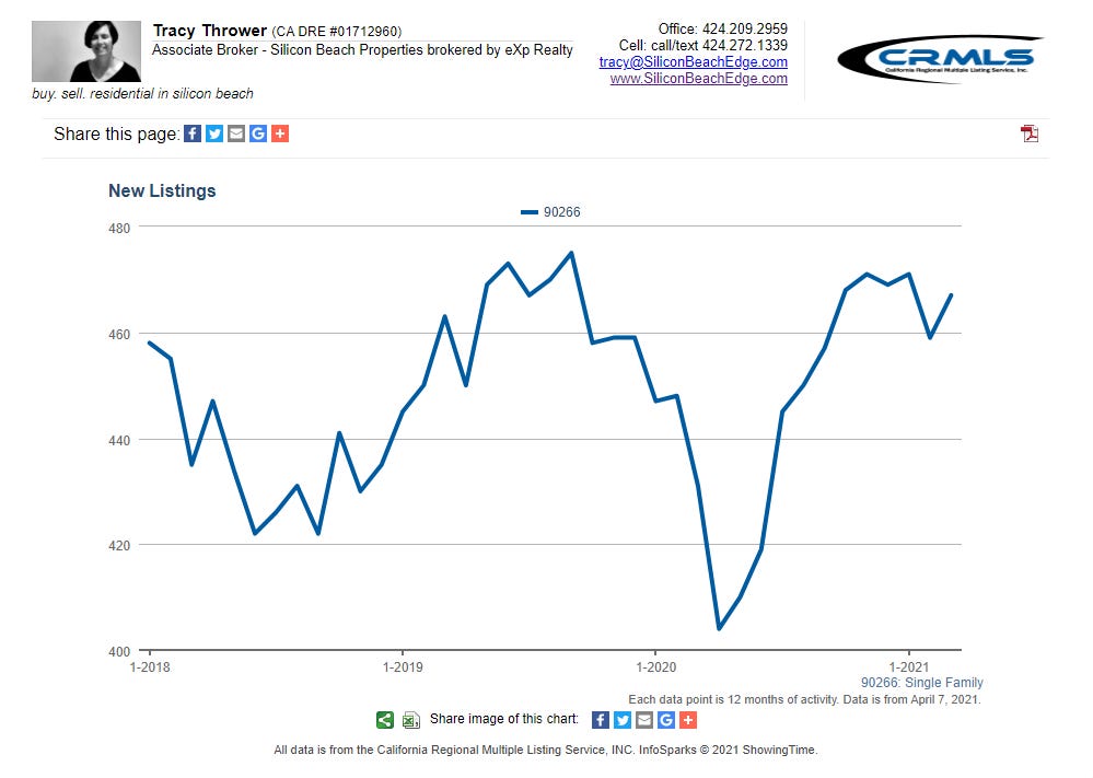 There was a lot of chaos around our election in November, followed by the holidays and lots of COVID uncertainty. Home owners in Manhattan Beach weren't in the mood to list homes, but that appears to be changing with Spring. Like a little sprout, more listings are popping up. Stay tuned into next month to see if the shoot keeps sprouting. 🌷
