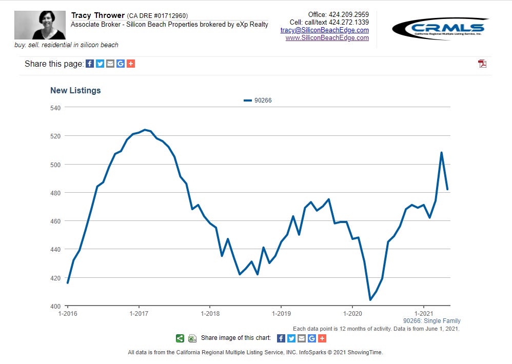The MLS just dropped its May listings data and I'm seeing a continuation of interesting real estate trends in Manhattan Beach CA residential real estate. How's the market in Manhattan Beach? Trendline says → increasingly leaning in sellers' favor.