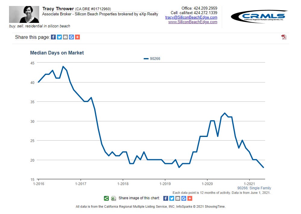 What does this trendline mean for Manhattan Beach home sellers? It means we are in a situation where your home will likely be snapped up in a New York minute for a pretty penny if listed right now.