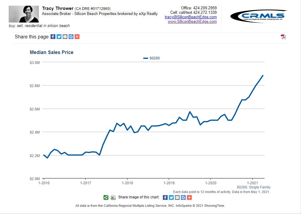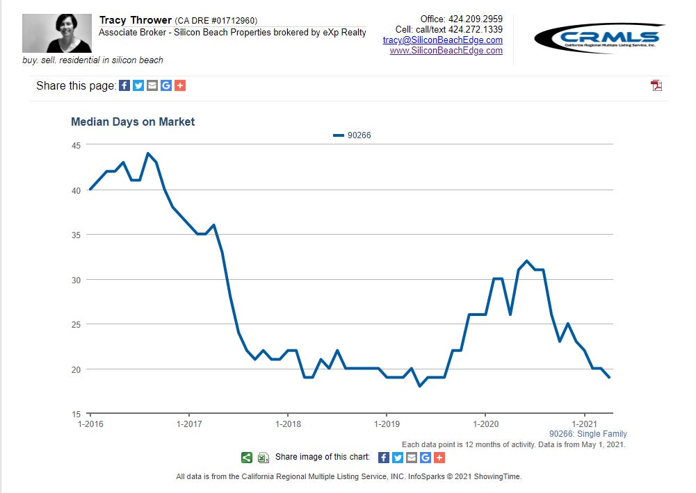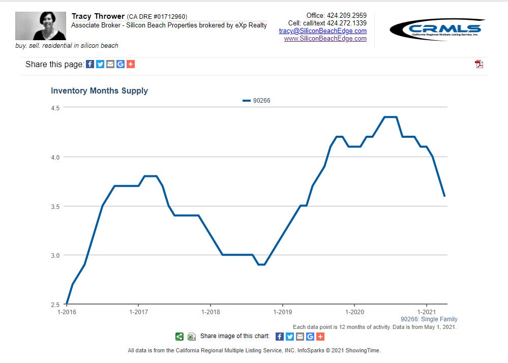 Pro-tip #3 for Manhattan Beach home buyers: With the median price sprinting up $50K/month, you will want to make a list of your non-negotiable needs in a property and be ready to pounce on the first property that matches enough or your criteria. Waiting is getting more expensive by the month.