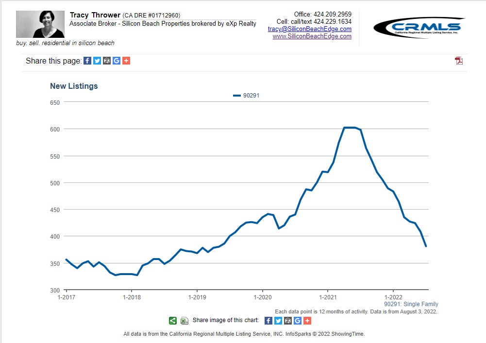 New listings have fallen off a cliff in Venice! June showed a 20% drop. July is more like a 50% drop from June's lower numbers. We are definitely below pre-pandemic numbers. This means fewer choices for buyers in Venice.
