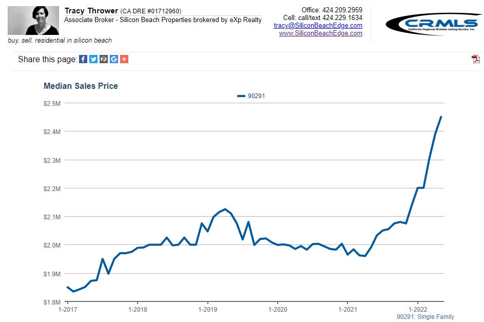 The data shown is also for single-family homes. If you want condo or combined data for Venice CA 90291, or custom graphs for other areas, just ask!
