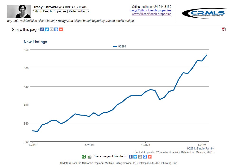 Most other Silicon Beach communities are experiencing a listings shortage, but Venice continues to see an increasing number of new listings since the pandemic began.