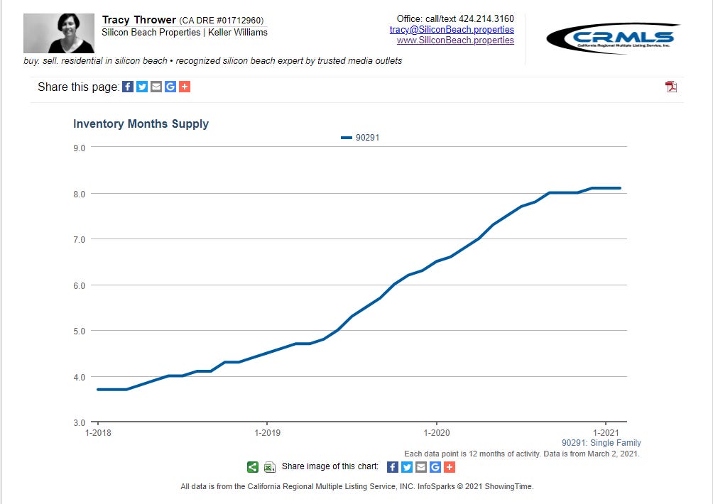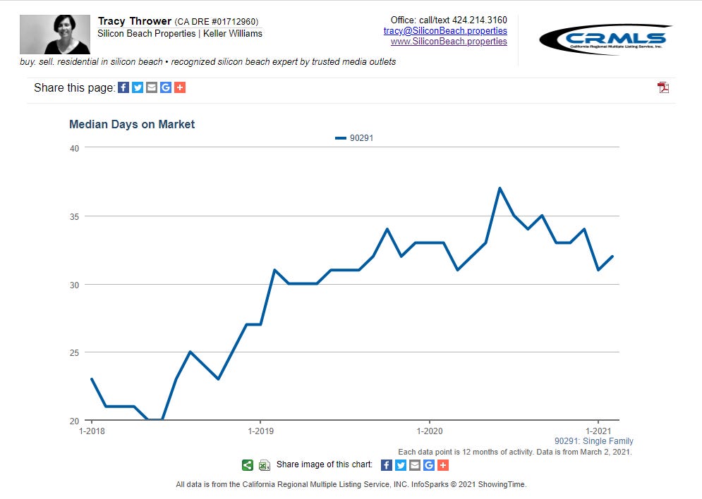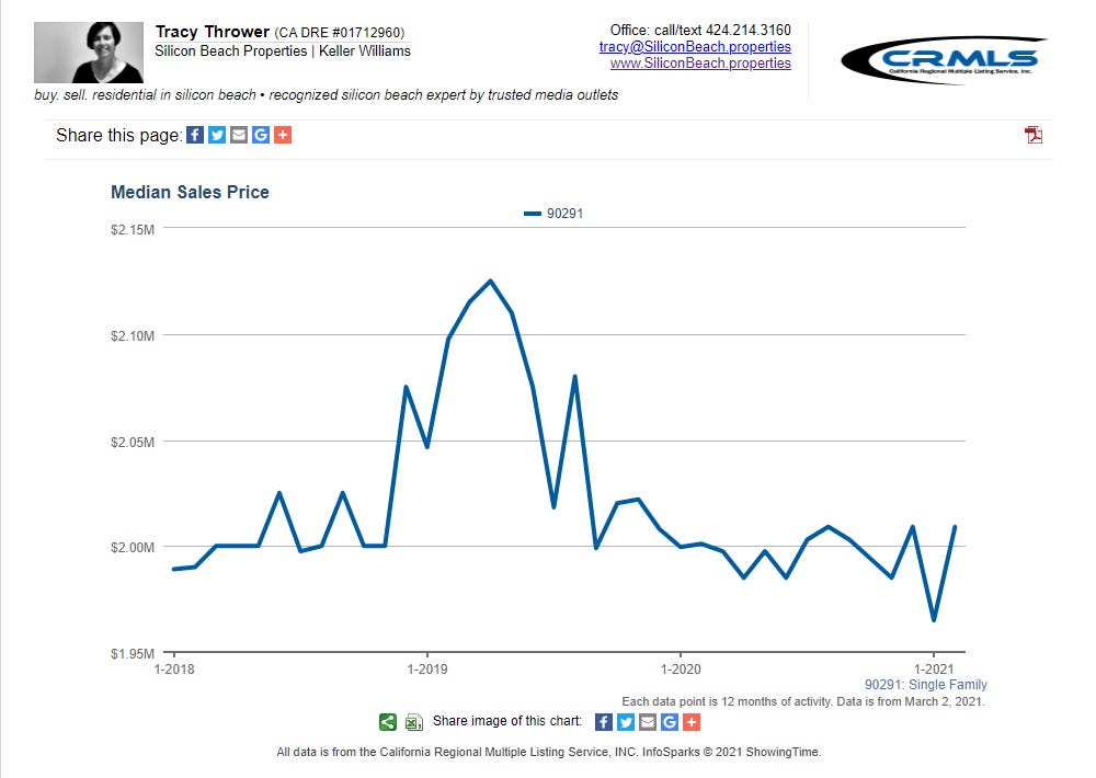 All graphs presented herein show data for the last five years on a rolling 12-month average to smooth the bumps. The data shown is also for single-family homes. If you want condo or combined data for Venice CA 90291, or custom graphs for other areas, just ask!