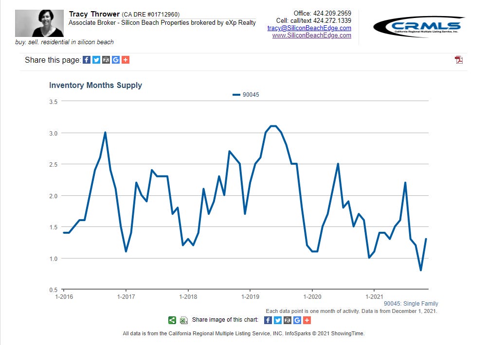 There is also a good amount of housing stock in Westchester held by older owners who might be more motivated to move now with the passage earlier this year of Prop 19, which allows them to take their low tax basis to another CA property. The provisions kicked in April 1st for the 55+ crowd. I’m not seeing much chatter about this tax savings yet, but it will come.