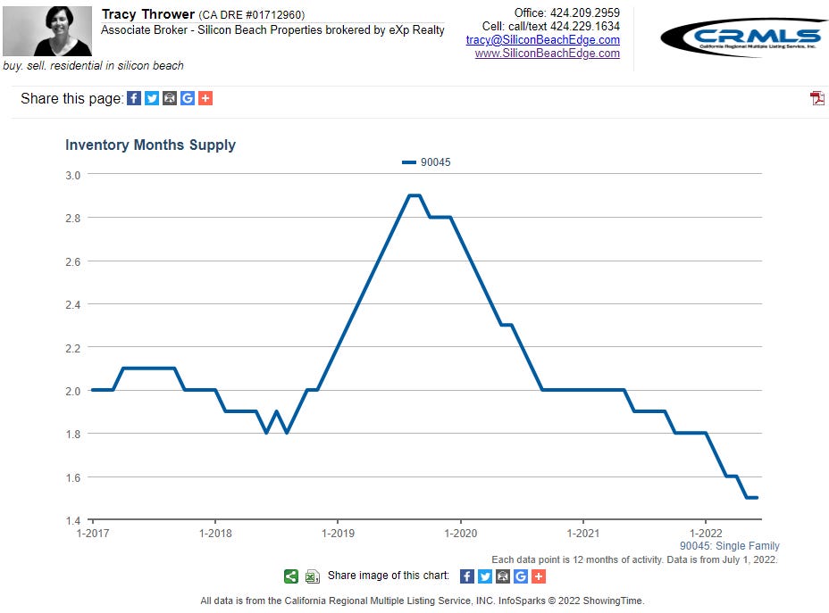 Interest rates are all anybody wants to talk about right now. Will higher rates impact the price story in Westchester? There is still so much demand and Westchester still represents a big bang for the buck in Silicon Beach. My prediction is that demand may soften but it's not going to evaporate. Excess demand supports a continuing strong sellers' market.