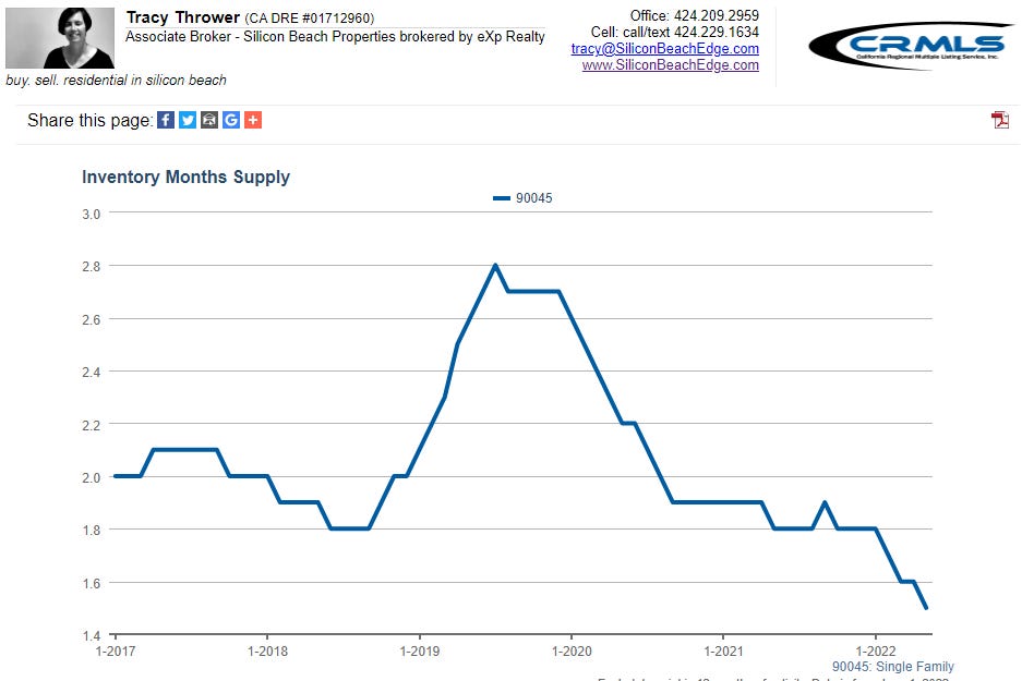 Interest rates are all anybody wants to talk about right now. Will higher rates impact the price story in Westchester? There is still so much demand and Westchester still represents a big bang for the buck in Silicon Beach. My prediction is that demand may soften but it's not going to evaporate. Excess demand supports a continuing strong sellers' market.