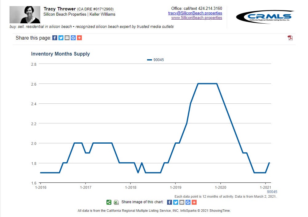 But Spring is around the corner and families will start thinking about moving. Also, there is a good amount of housing stock in Westchester held by older owners who might be more motivated to move now with the passage of Prop 19, which allows them to take their low tax basis to another CA property.